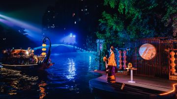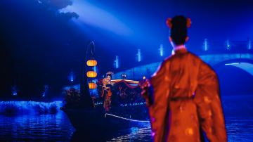 演出采用全新“行进+沉浸”式观演模式,并将戏剧、电影、水幕、光影、装置等艺术巧妙地融于一体,带来真人实景与水幕光影相结合的视觉盛宴,让观者感受“人在船中坐,船在画中游”的别样体验。